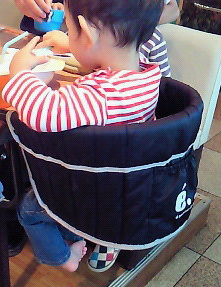 体重15キロまでOKらしいので、14.9キロの長男はギリギリなのですが、机の高さがちょうど良いと言ってコレをとても気に入っていました。確かに、机の高さってビミョーなんですよね・・・。で、次男はというと、私のスリングに入って、いつも以上によく食べていました。